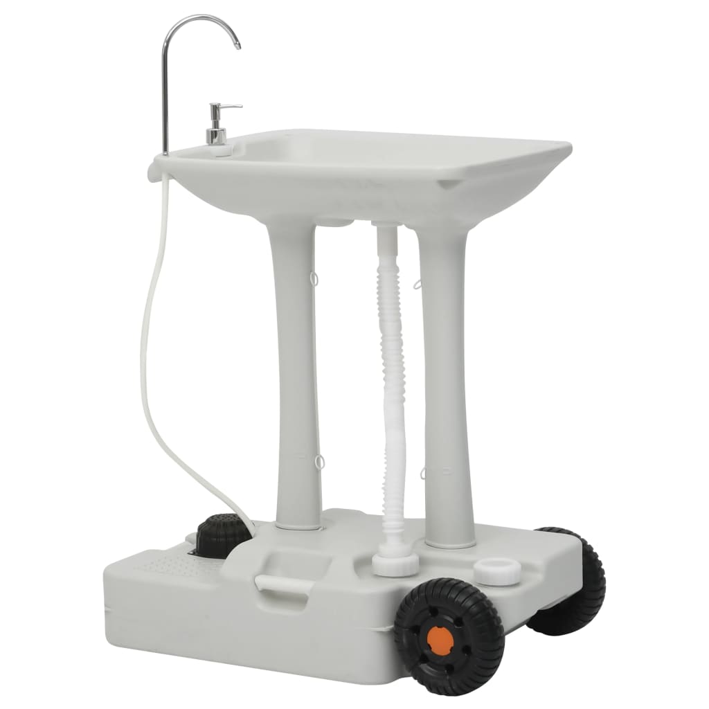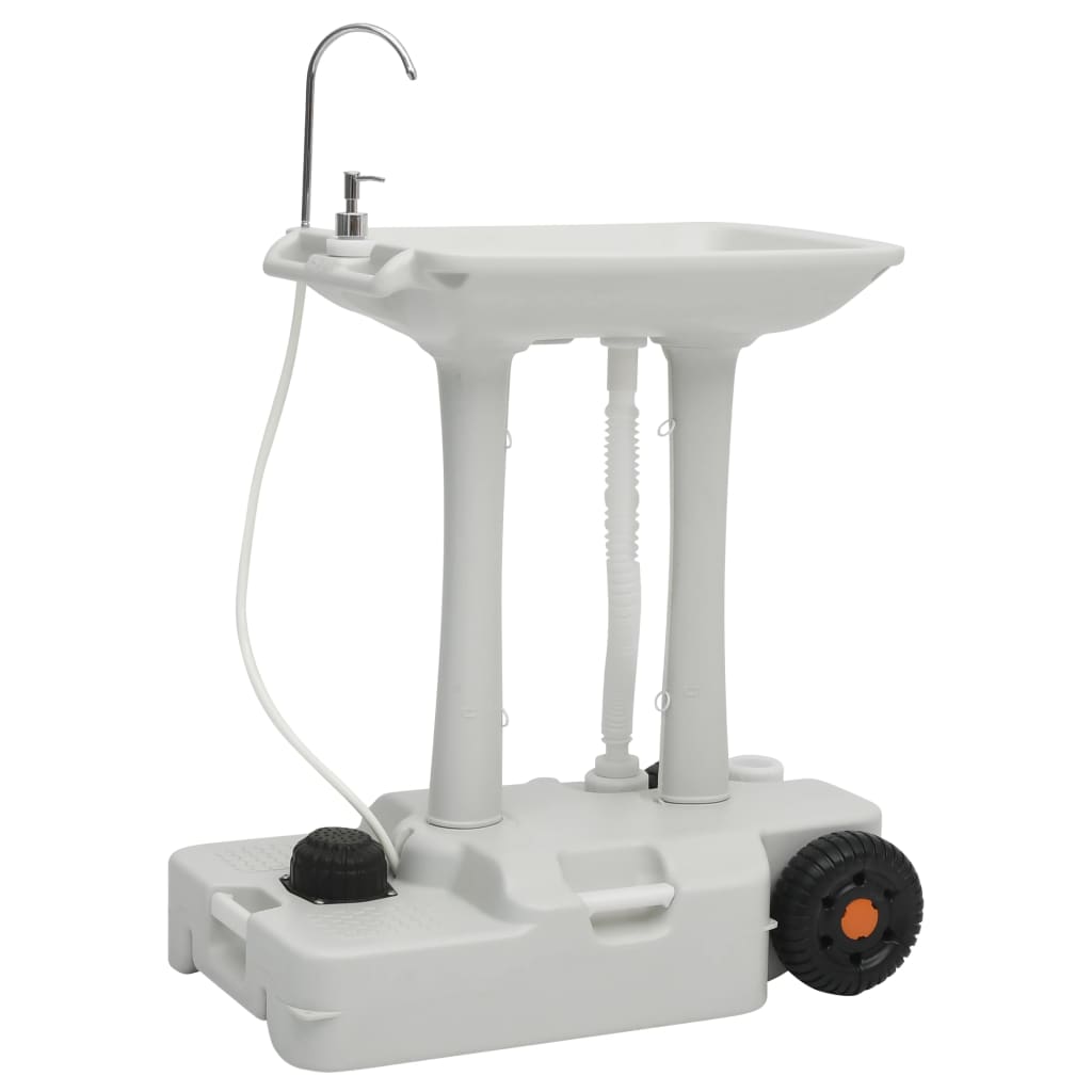 This portable camping handwash stand and water tank set is perfect for camping, motorhome trip, construction site, food event, pop kiosk, etc. with its lightweight and compact design. Multifunctional handwash stand: The handwash station is fitted with a soap dispenser, a towel rack, and a freshwater tank to meet your different needs. It features a hands-free operation by stepping on the foot pump to provide a stream of water. Wheeled water tank: The water tank offers sufficient water storage for emergency use. Several water outlets allow water to flow in and out quickly. The top handle and wheels make it easily transported. Durable material: The camp set is made of strong high-density polyethylene, making it resistant to shock and impact for durability. Note: Each product comes with an assembly manual in the box for easy assembly.