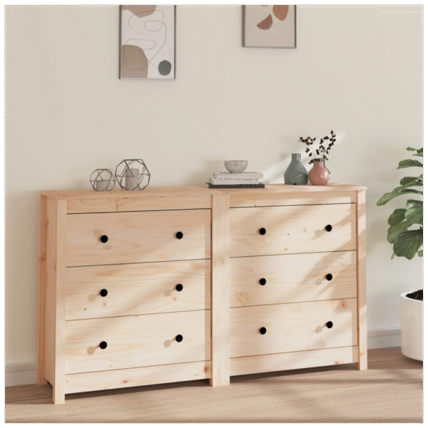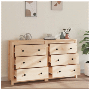 Enjoy a tidy living room with this wooden sideboard! This practical sideboard will satisfy your various requirements and make an ideal complement in your room. Solid pine wood: Solid pine wood is a beautiful natural material. Pine wood has a straight grain, and the knots give the material its signature, rustic look. Ample storage: The cabinet provides ample storage space for keeping your various daily essentials well organised and within easy reach. Sturdy top: The sturdy top of the sideboard cabinet is ideal for displaying decorative objects, photo frames, or potted plants. Warning: In order to prevent overturning, this product must be used with the wall attachment device provided. Note: Each product comes with an assembly manual in the box for easy assembly. The sideboard is made up of two small sideboards.