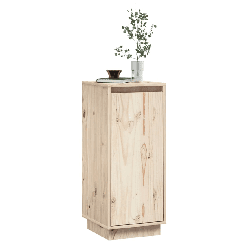 This wooden sideboard brings a touch of elegance and a classy appearance to your living area. This side cabinet is made of solid pinewood that ensures its durability and stability. The door cabinet provides ample storage space for books, multimedia appliances, and other items. The sturdy top is also ideal for displaying decorative objects, photo frames, or potted plants.