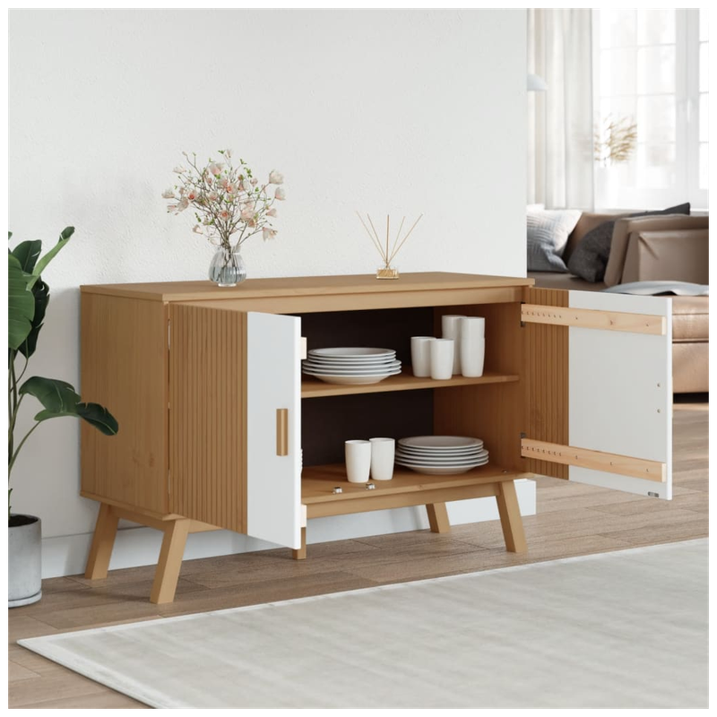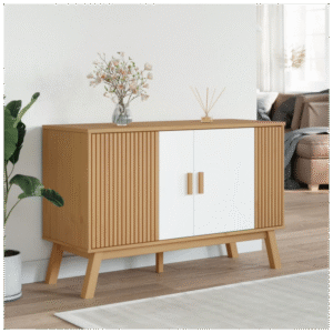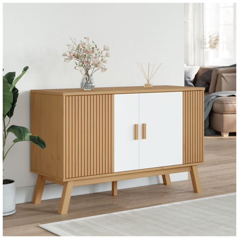 This classic wooden vidaXL sideboard OLDEN featuring a Scandinavian design is meant to meet your requirements and is an excellent addition to your room. Solid pine wood: Solid pine wood is a beautiful natural material. Pine wood has a straight grain, and the knots give the material its signature, rustic look. Made of solid pinewood, the storage cabinet is sturdy and stable.