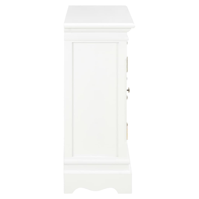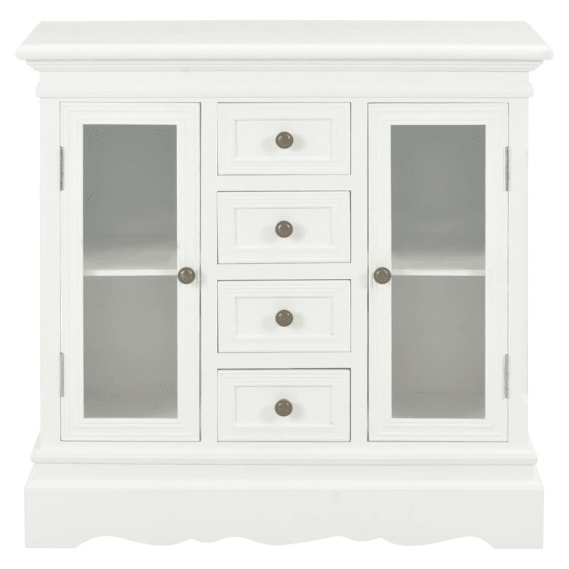 Add a touch of elegance with our classic sideboard! This French style sideboard features ample storage space. It will make a practical as well as decorative addition to your living room, bedroom or any entryway. The side cabinet is made of MDF and solid pine wood, making it exceedingly robust and durable. The wooden cabinet has 4 drawers and 2 storage compartments with acrylic doors for ample storage space. Additionally, these classic knobs add to the storage cabinet’s vintage style. The product is easy to be assembled. Upgrade your interior to the next level with our simple yet elegant sideboard!