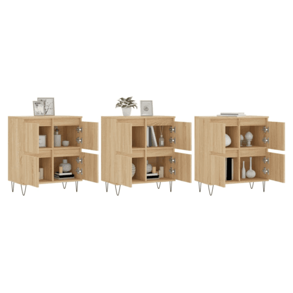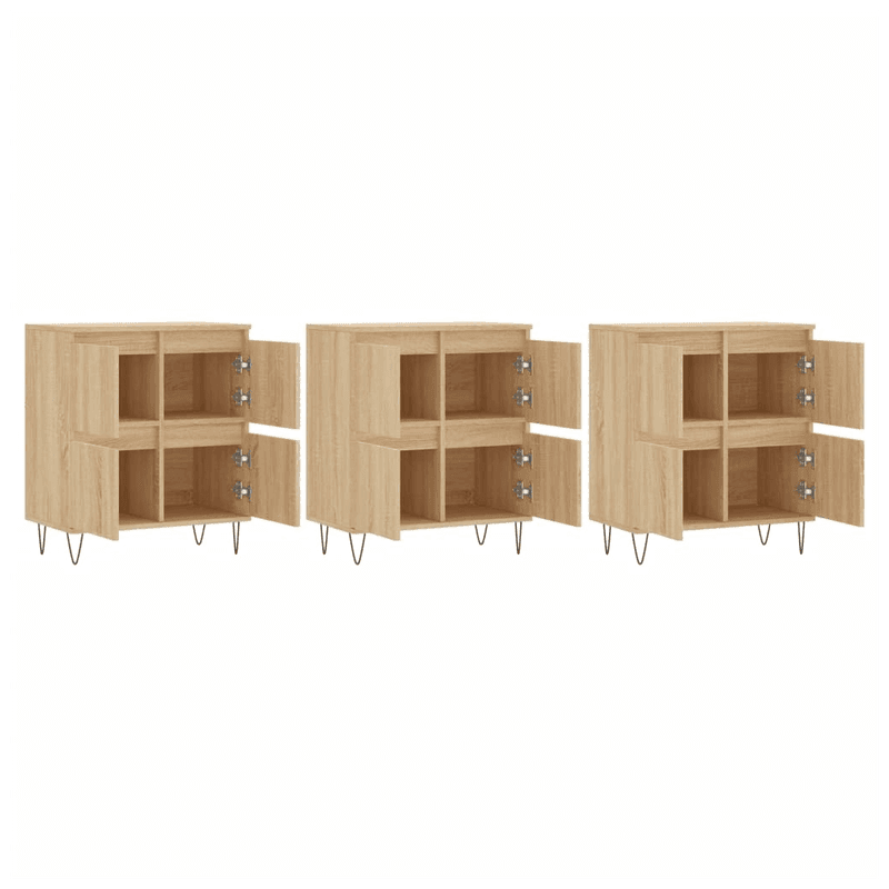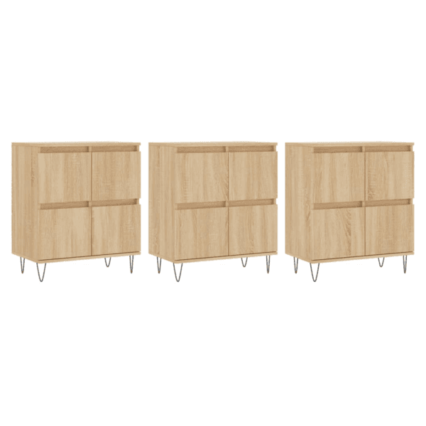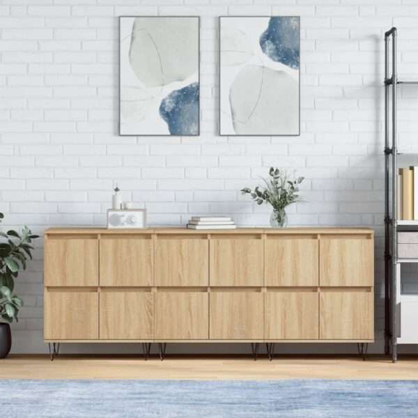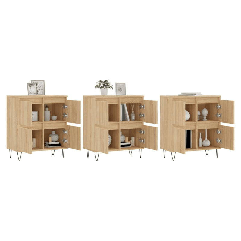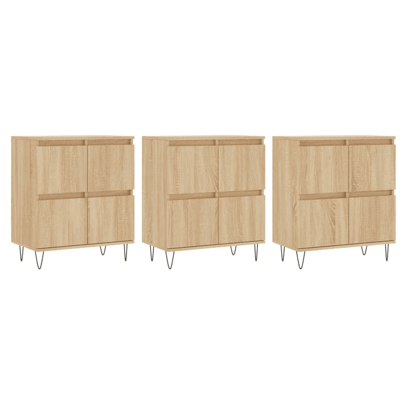 These classic sideboards, featuring a timeless look, are meant to be an excellent addition to your home. Durable material: The engineered wood is of exceptional quality with a smooth surface and features strength, stability and resistance to moisture. Ample storage space: The cabinet offers ample storage space for keeping your various daily essentials well organised and within easy reach. Displaying function: You can also place your favourite photos, decorations or flowers on top of the storage cabinet to enrich your life. Warning: To prevent it being overturned, this product must be used with the provided wall attachment device.