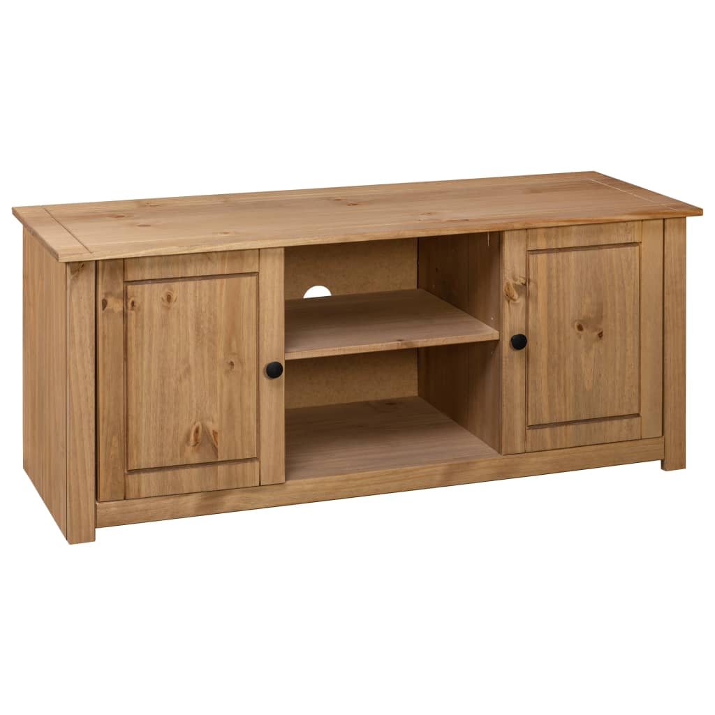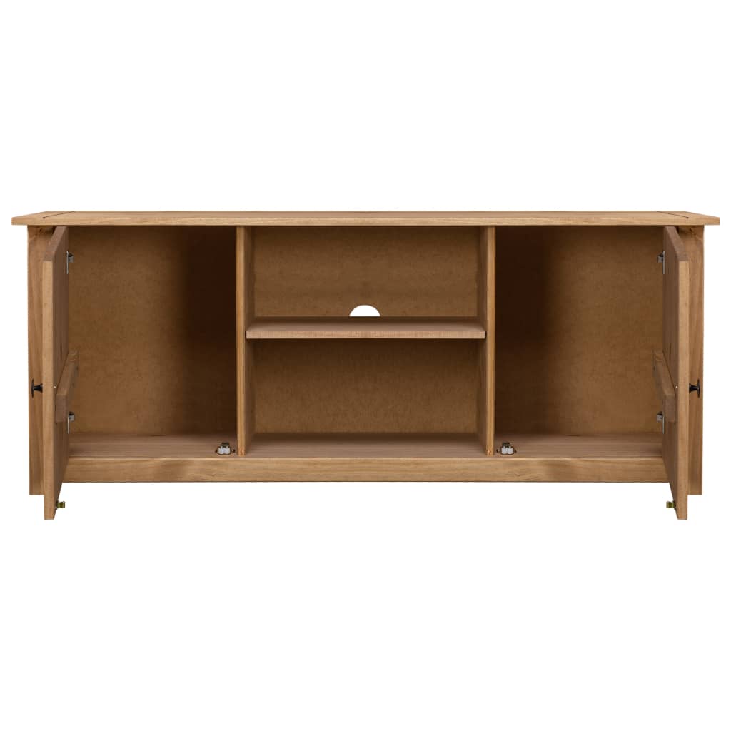 This striking wooden TV cabinet features a rustic and retro design which will become the focal point of your living room! Made of solid pine wood, this TV stand is highly sturdy and durable. Its elegant design will make the low board a user-friendly and extraordinarily decorative addition to your home. The stereo cabinet has 2 doors and 2 compartments, providing ample space for keeping all kinds of smaller items like keys, notepads, pens, as well as other knick-knacks organised and within reach. Additionally, the large top is ideal for placing your TV, router, multimedia appliances or for displaying ornamental objects. The HiFi cabinet is easy to assemble.