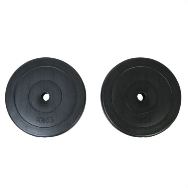 These 2 weight plates are suitable for all your professional weight-training at home. Each weight plate weights 10 kg. The weight plates are covered with robust, floor-friendly plastic, which allows you not to experience any annoying clanging sounds of the weights.
