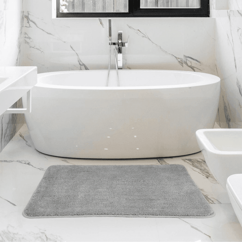 ULTRA SOFT & COMFORTABLE: Pamper your feet with our upgraded technology bathroom mat premium dense microfiber construction makes the bathmat very fluffy and super soft, giving you a comfortable feeling to the touch and providing ultrasoft support for your
