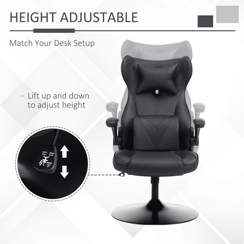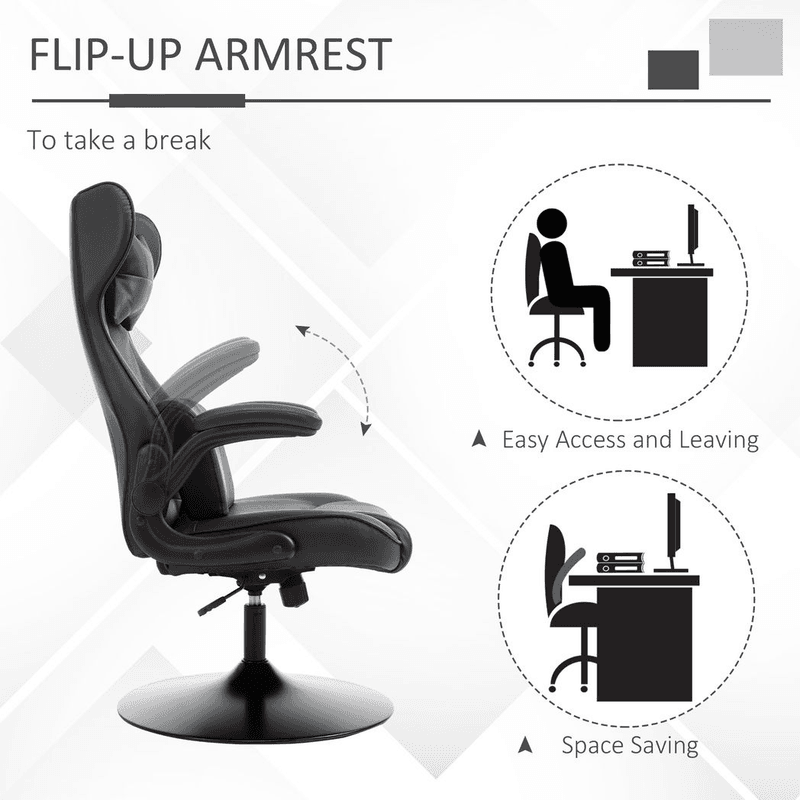 – Flip-up armrests to get in and out of chair easily, also easy to push under tables