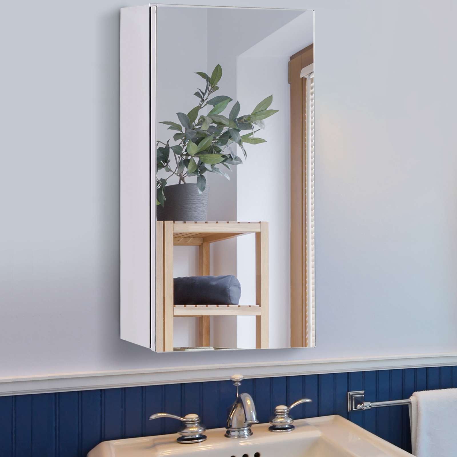 DESIGN: Wall-mounted mirror cabinet: contemporary design mixing sobriety and elegance.