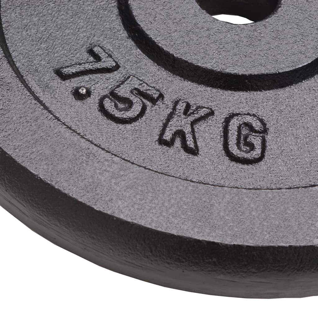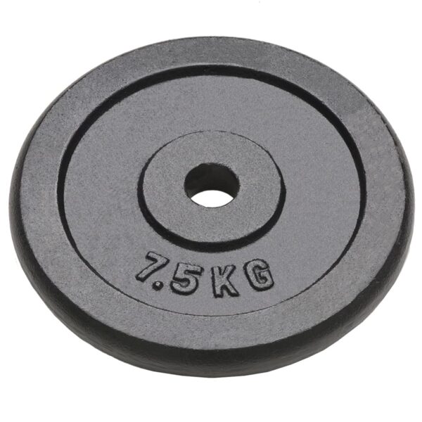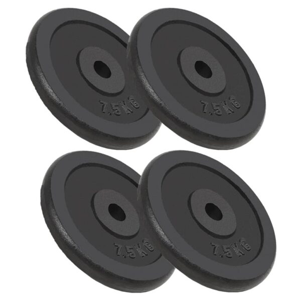 This set consists of 4 weight plates that weigh 7.5 kg each. It will be perfect for strengthening and shaping your muscles when used with a barbell bar, dumbbell bar or curl bar with a diameter of 30 mm. It is ideal for use at home or in a gym. These weight plates are made of high-quality cast iron with a scratch-resistant baked enamel powder coat finish. The weight is clearly stamped on each plate for quick and easy identification.