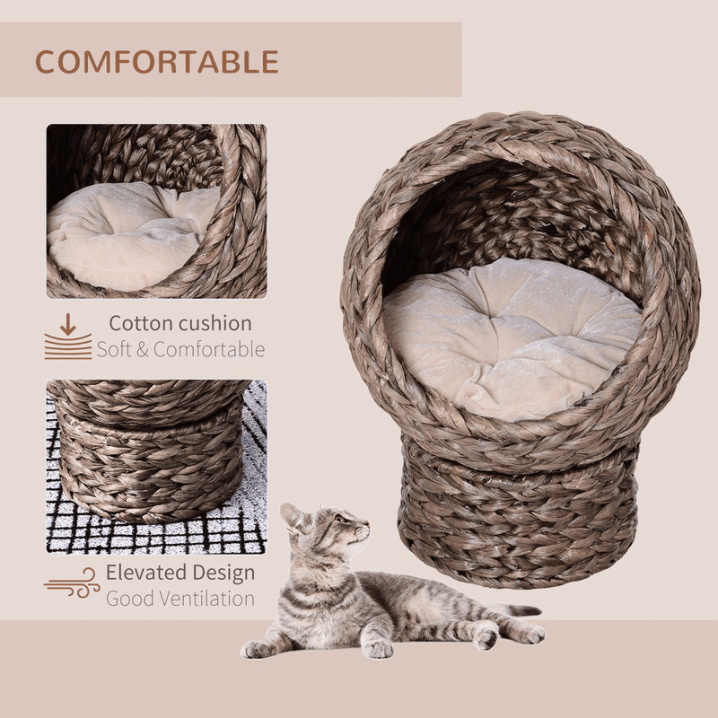 – Dimensions: 52H x 42L x 33Wcm. Inside: Dia36cm. Cat hole: Dia30cm. Mat size: 2.5H x 40L x 40Wcm. Base: 15H x Dia28cm