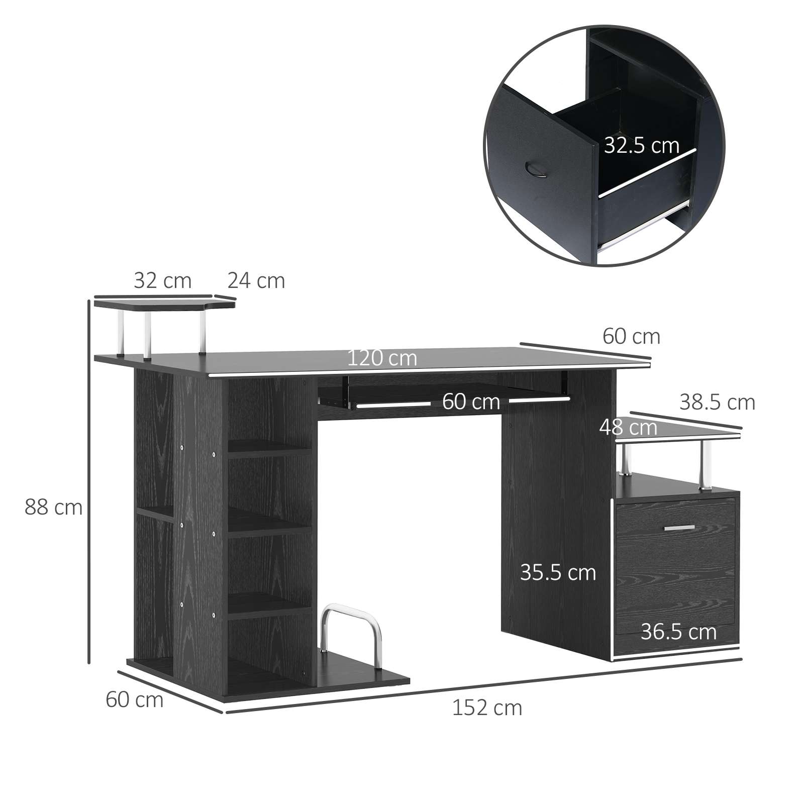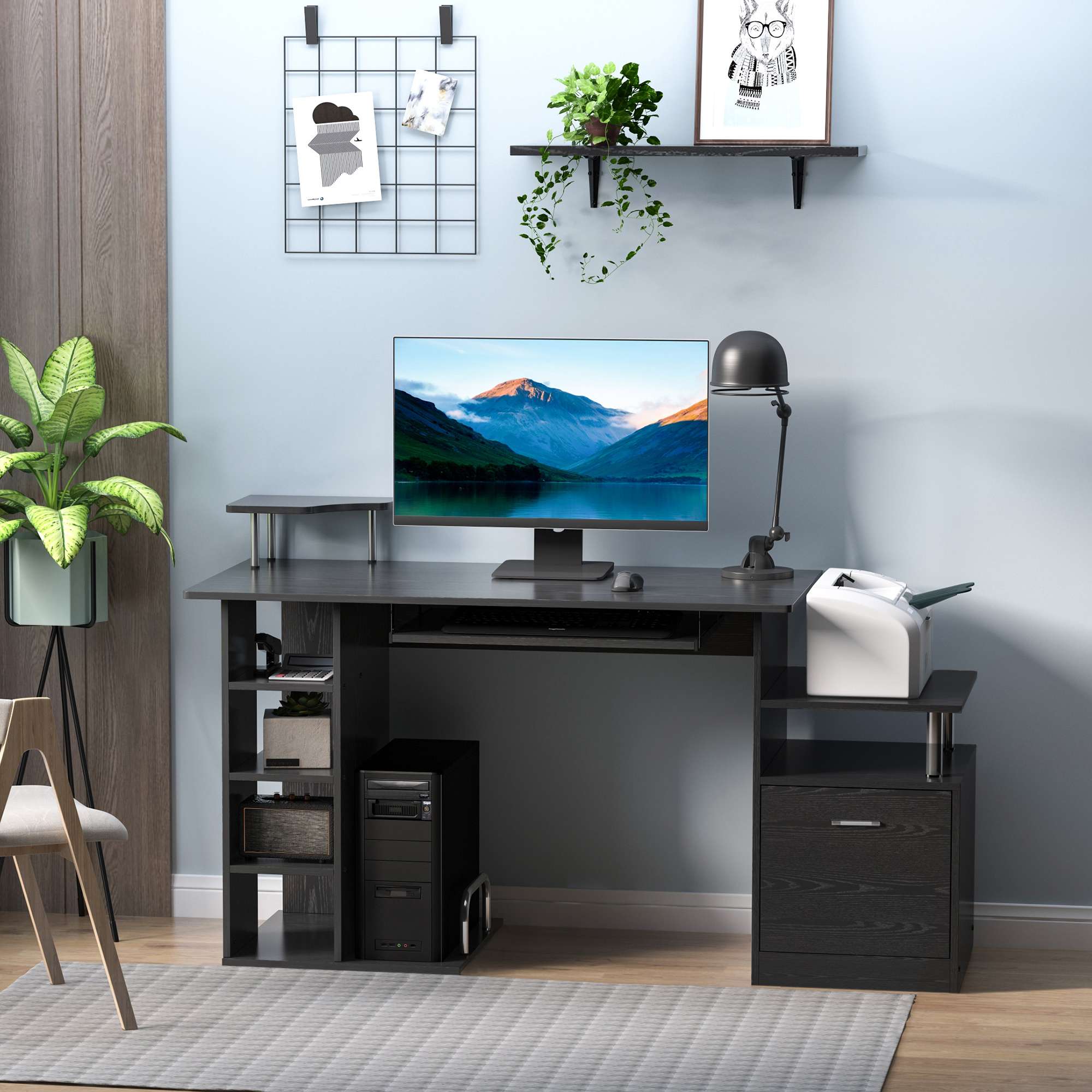 – Wood Computer Desk Laptop Workstation Drawer Shelf for Home Office HOMCOM