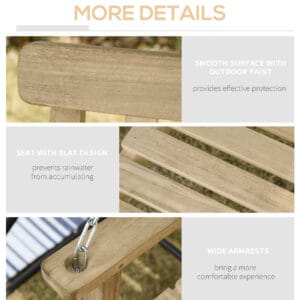 Enjoy the beautiful weather with your friends and family by relaxing on our Outsunny 2 person hanging porch swing bench. Have a seat and let the soothing rocking sway you gently back and forth. Metal hanging chain is included for stable and strong support. Its slat design frame, deep seat, and high back offers maximum seating comfort. With this outdoor furniture from Outsunny, you can sit back, relax, and let the summer breeze take you away.