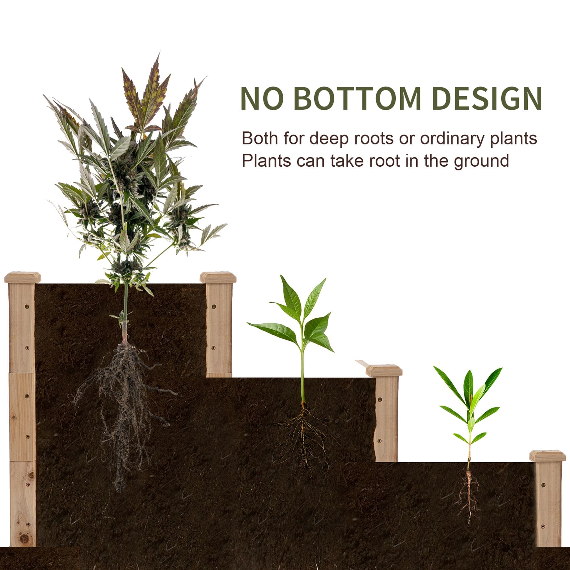 The appearance of simple natural colour, accompanied by your beautiful plants, please believe that this will become a beautiful scenic spot in your yard and garden. The stepped design not only allows your plants to get the sunlight well, but also allows each plant to be in your sight. Do you want to grow some deep-rooted plants? Feel free to try this charming wooden raised bed, it can give your plants enough space to grow.